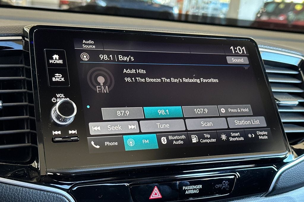 - Radio: 215-Watt Audio System w/7 Speakers -inc: subwoofer, 9" color touchscreen, Bluetooth® streaming audio, Speed-Sensitive Volume Compensation (SVC), wireless Apple CarPlay/Android Auto compatibility and 2.5A USB-A data port in front console, HondaLink, Select HondaLink features are complimentary, 36-month complimentary trials are available for security and remote packages, A subscription is required to continue HondaLink services after the trial ends